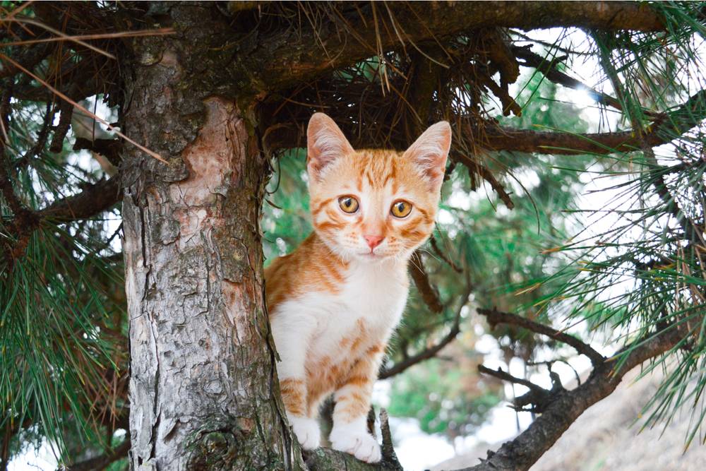 На записи запечатлены маленький рыжий котёнок и бегающая за ним небольшая обезьянка. В тот момент, когда пушистый питомец сел на краю большой ступеньки, примат пододвинулся максимально близко к предмету своего обожания и приобнял котёнка одной лапой.