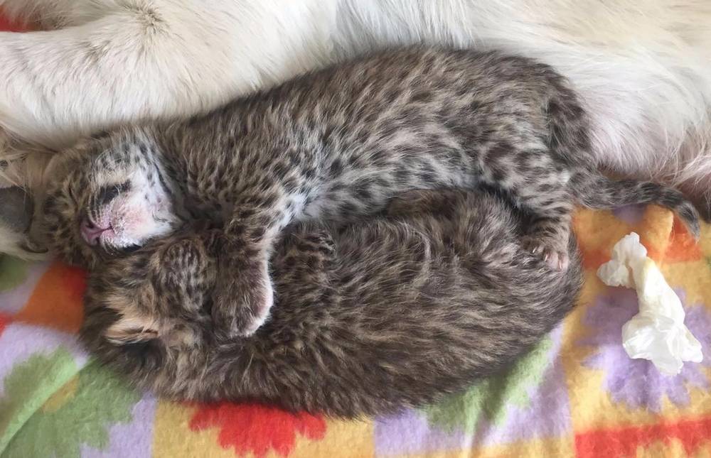 Самостоятельно сотрудникам зоопарка выкормить малышей не удалось, но Тесси как раз недавно родила 4 щенков, и у нее достаточно молока, чтобы выкормить еще двоих котят (хоть и диких).